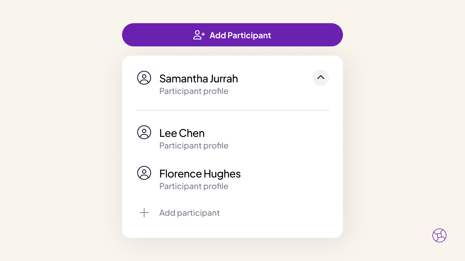 Under the purple ‘Add Participant’ button, you’ll see a participant’s name. Click it, and a list of all the Dashboards you’re connected to will appear.